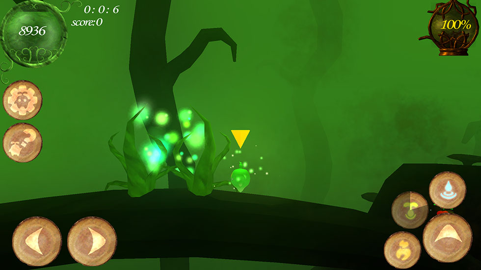 遊戲採觸控按鈕,介面上每個圖示對應按鈕功能,畫面上方為遊戲資訊,血條、時間、分數及汙染值,隨著汙染值高低,玩家血量也會受到影響,擊敗怪物可降低汙染值。