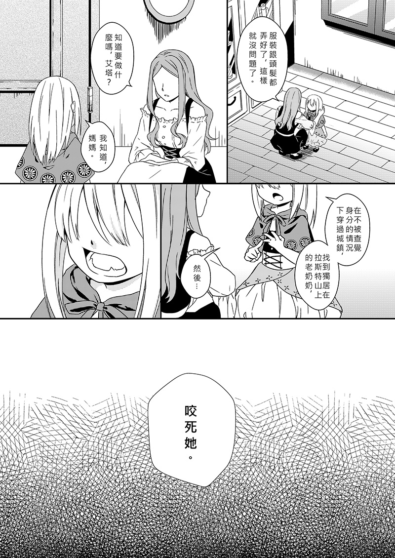 作為訓練,艾塔必須偽裝成人類穿越城鎮,咬死獨居在山上的老奶奶。沒想到剛進城鎮就被獵人識破身分!