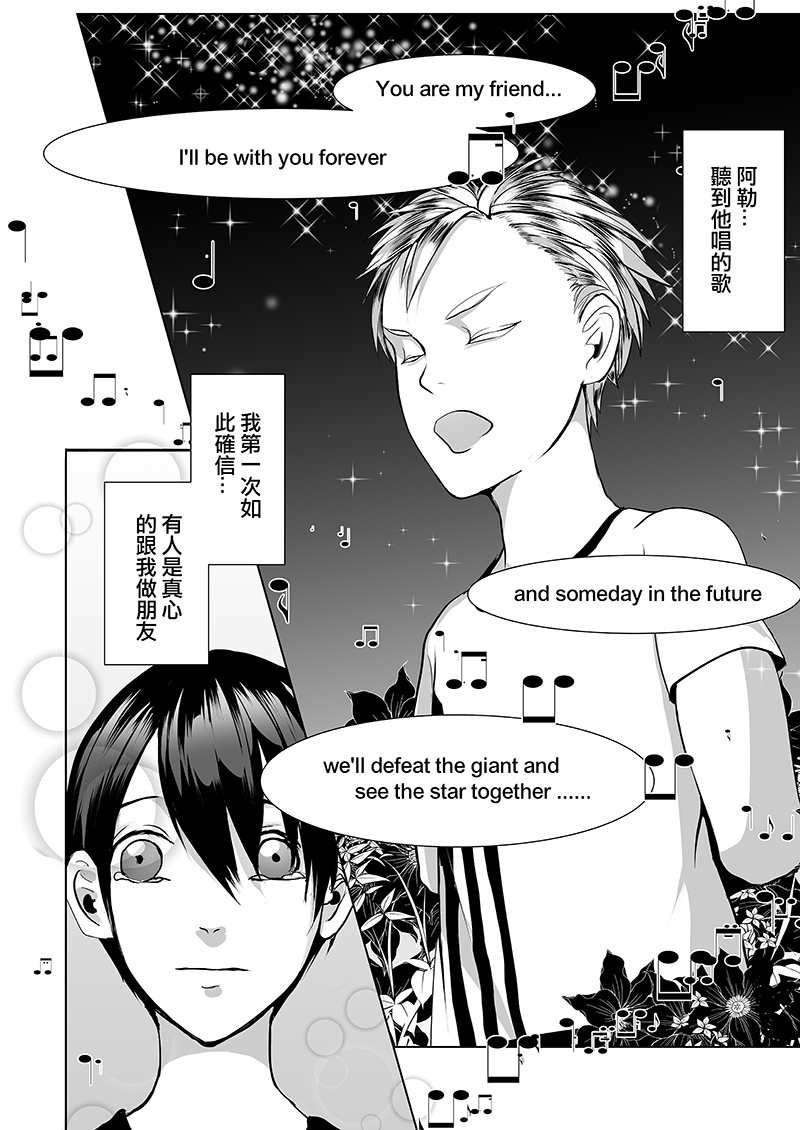 某一天的夢,醒來之後感動的大哭然後把它補成完整的故事,決定有一天一定要把它畫出來。