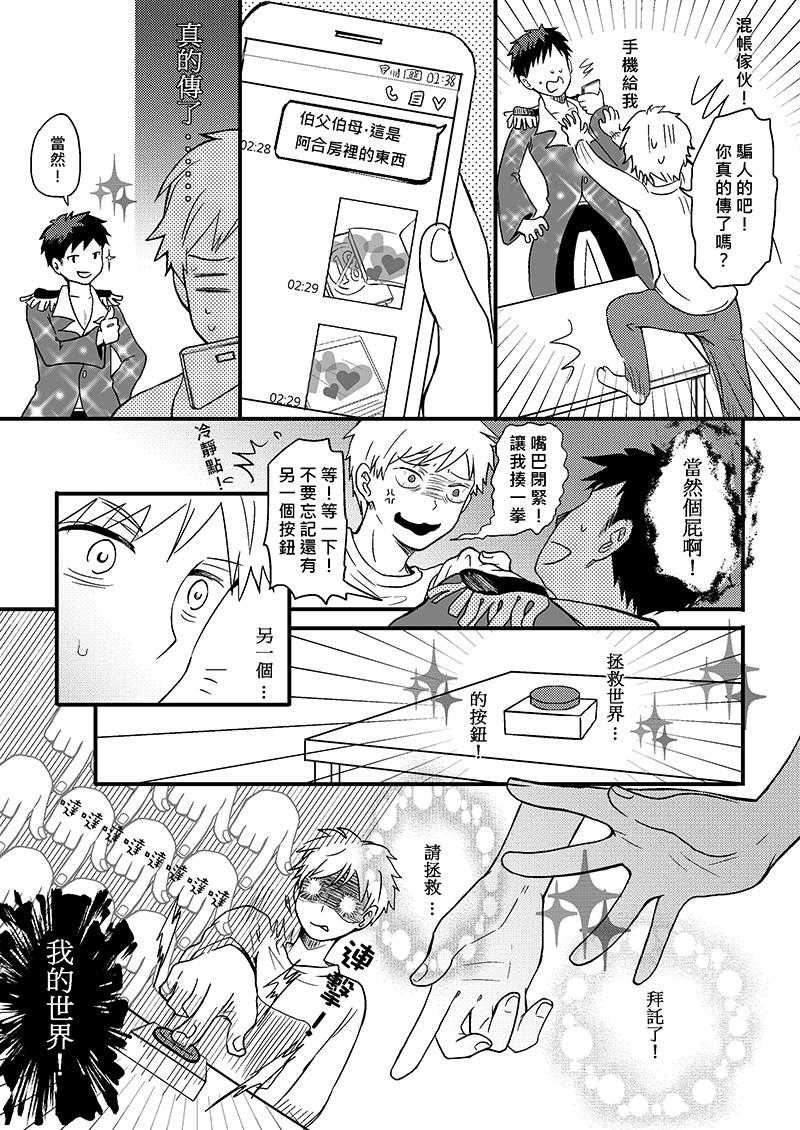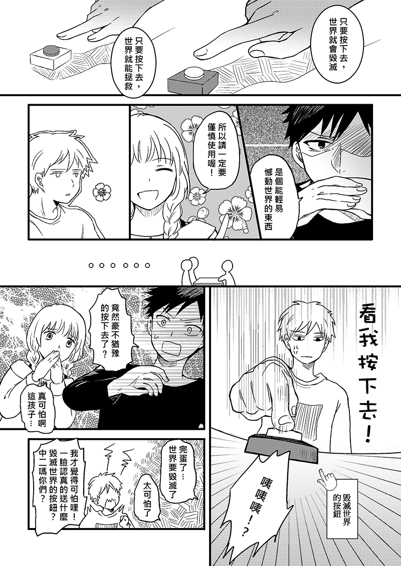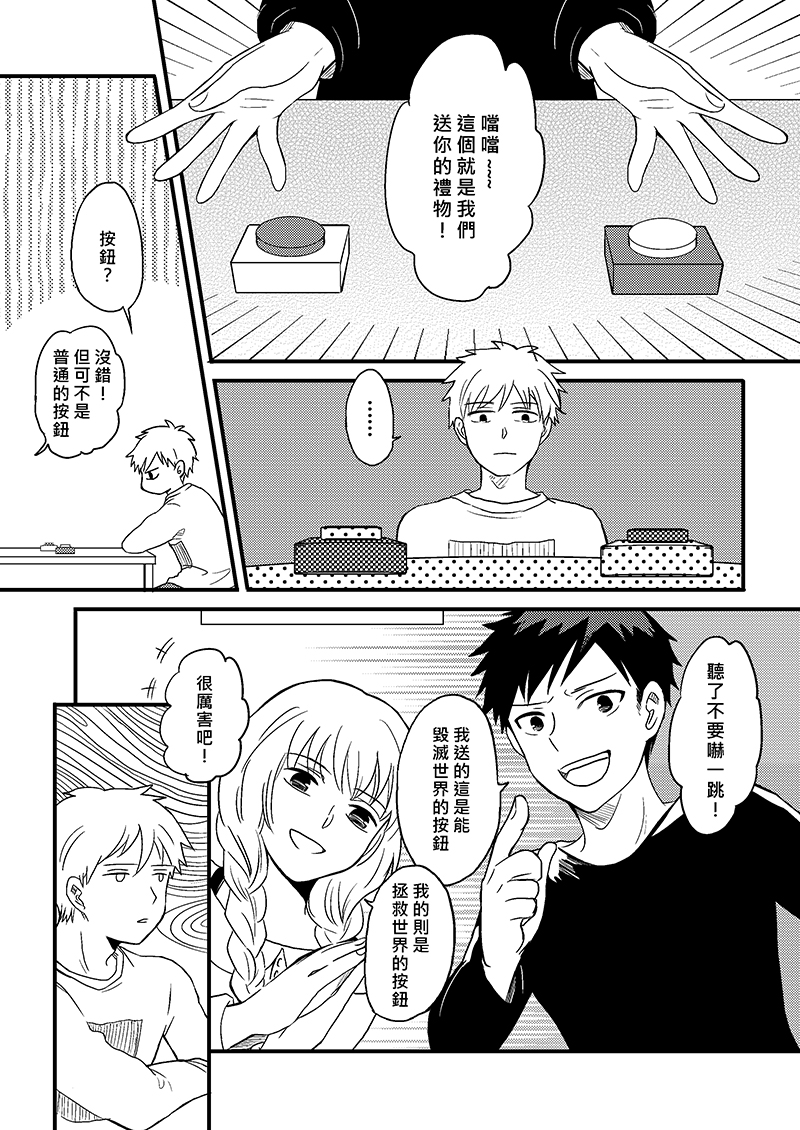 阿合在生日時收到了朋友送的禮物,分別是可以毀世界與拯救世界的按鈕!?