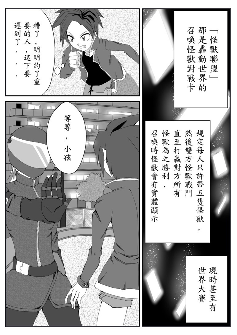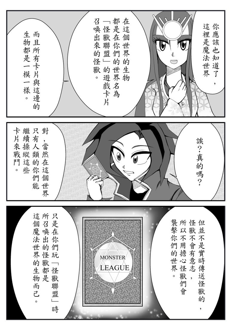 作品中的遊戲卡「怪獸聯盟」是全世界都在玩的遊戲卡,它的特點是玩家玩的時候進入一個空間把怪獸真的實現出來戰鬥,但當中存在著兩個世界,人們一直在玩的「怪獸聯盟」是從另一個世界過來的,而這種遊戲卡還藏著人類一直不知道的事。
