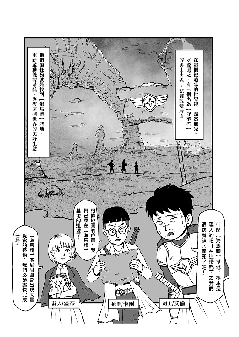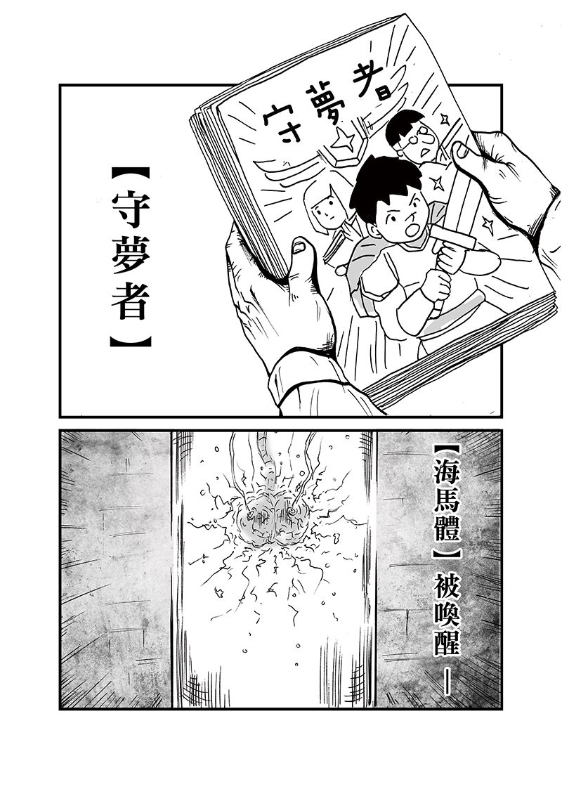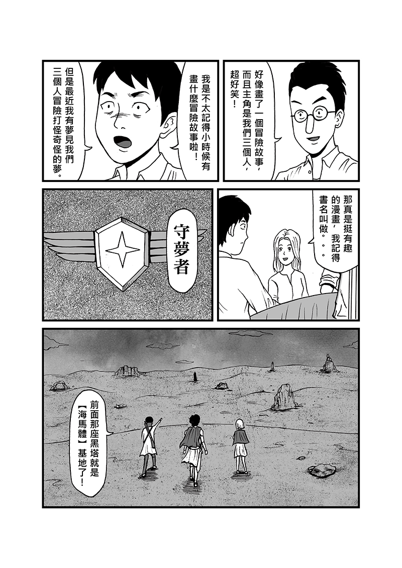 一個過著朝九晚五生活的青年,因為同學會的兩個朋友勾起了他小時候想成為漫畫家的夢想。他小時候筆下的漫畫【守夢者】,主角一行人為了恢復世界的美好,啟動【海馬體】的能源系統而踏上了冒險之旅。