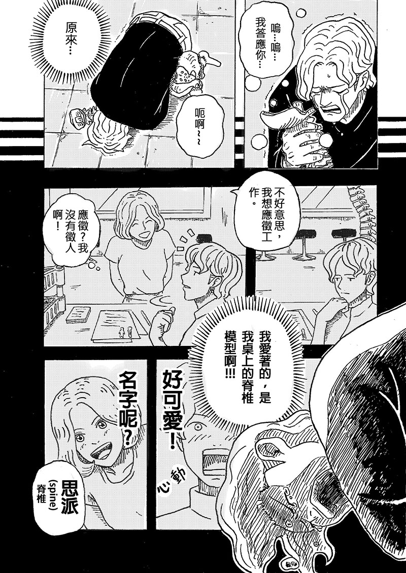 家父是整脊師,但法規讓他只能以整復推拿或民俗療法自居。 有一天我爸在做教學,單身的我抱著脊椎模型跟我爸的學生說這是我女朋友,突然就有了靈感。 家裡對面前陣子來了個道士,整天鈴噹響不停的。