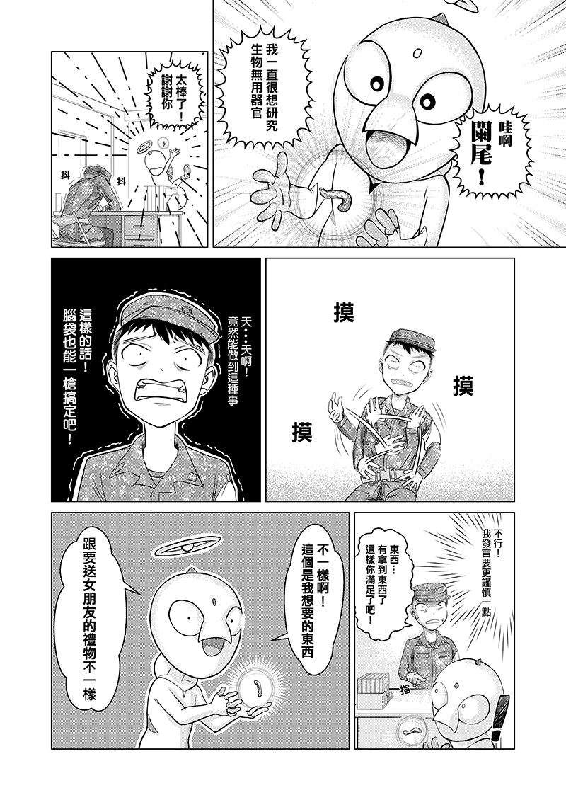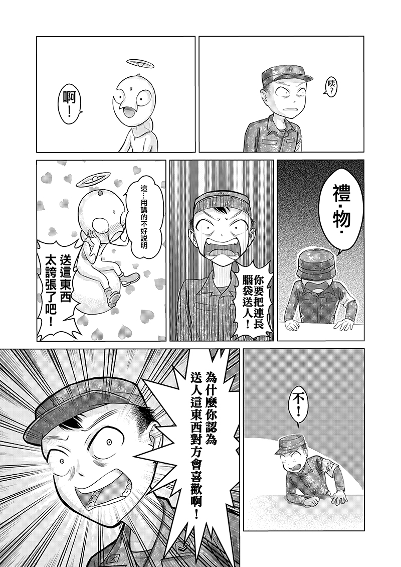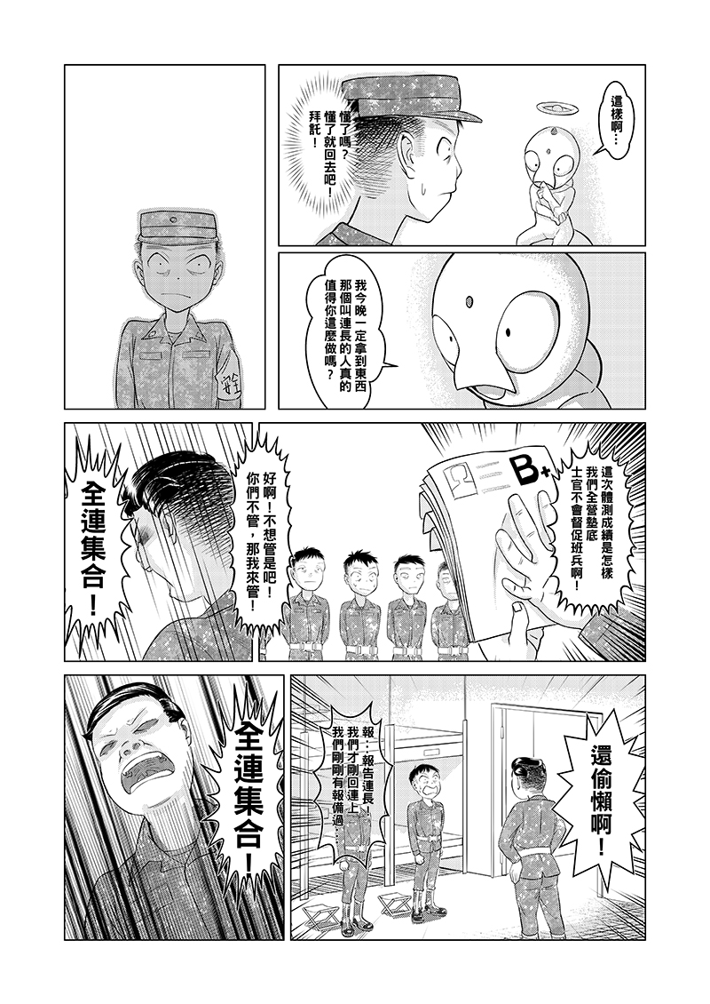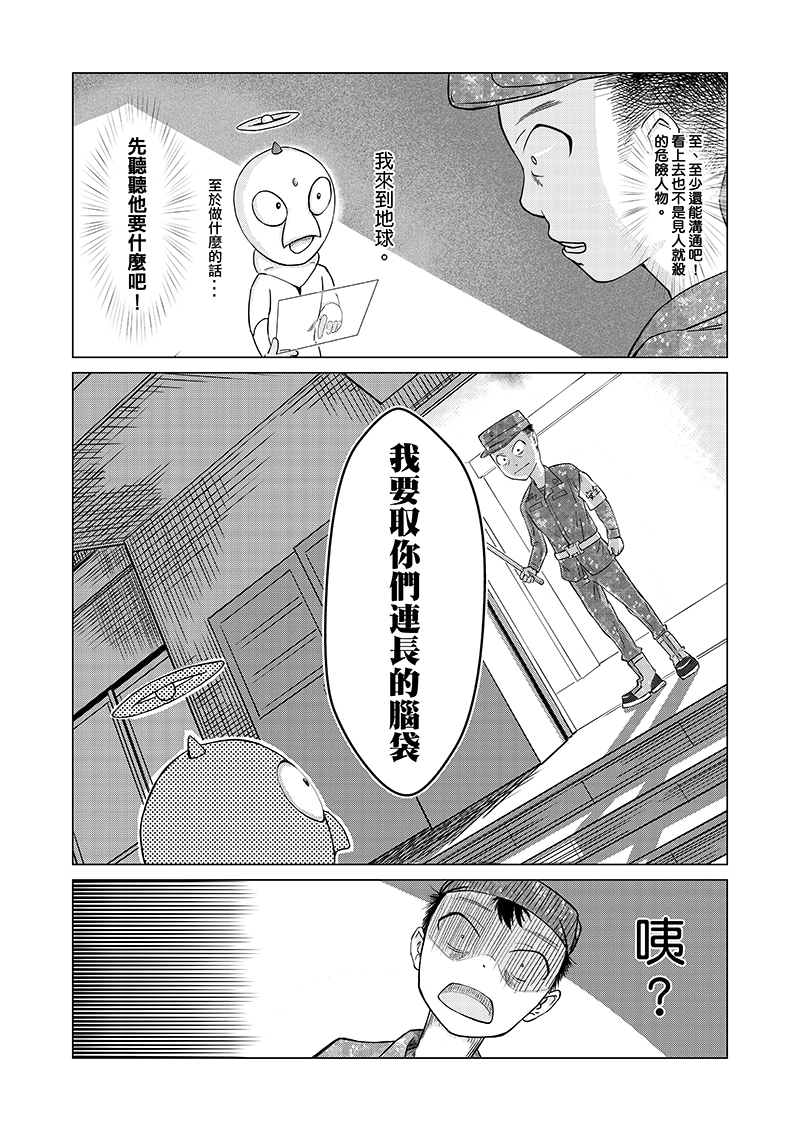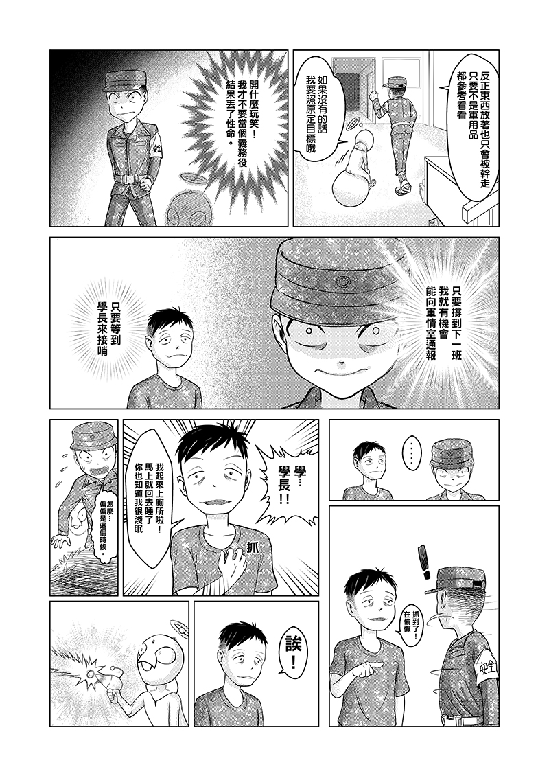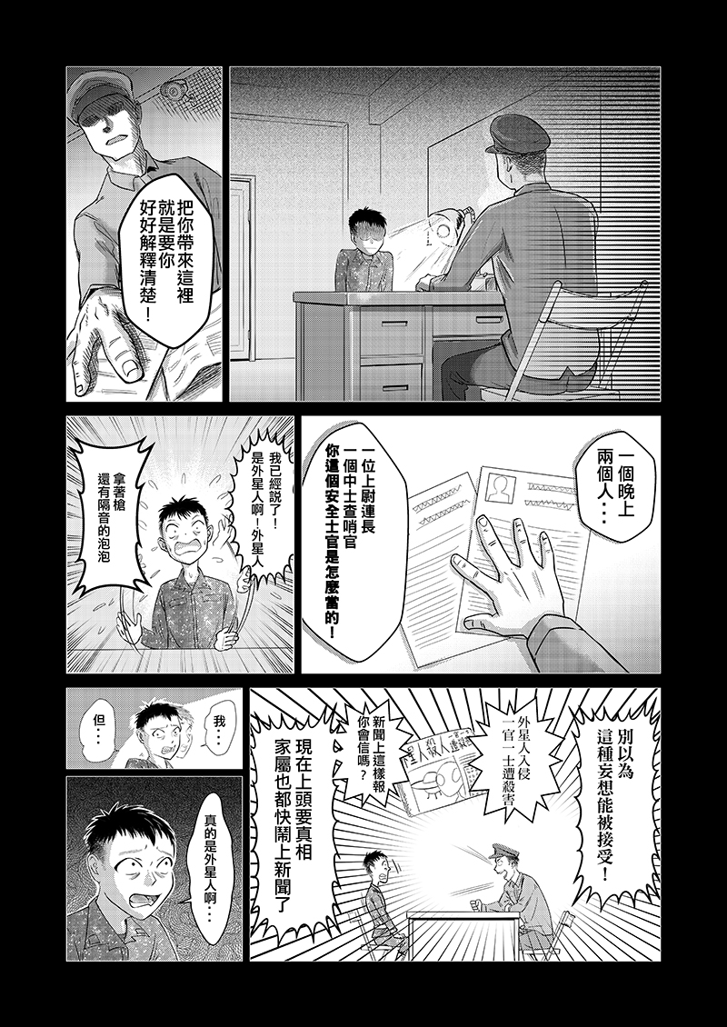 當兵站夜哨時最不想碰到的就是查哨官查哨,加上夜哨實際上很無聊,某夜靈機一動,要是來的不是查哨官,而是外星人的話會發生甚麼事?