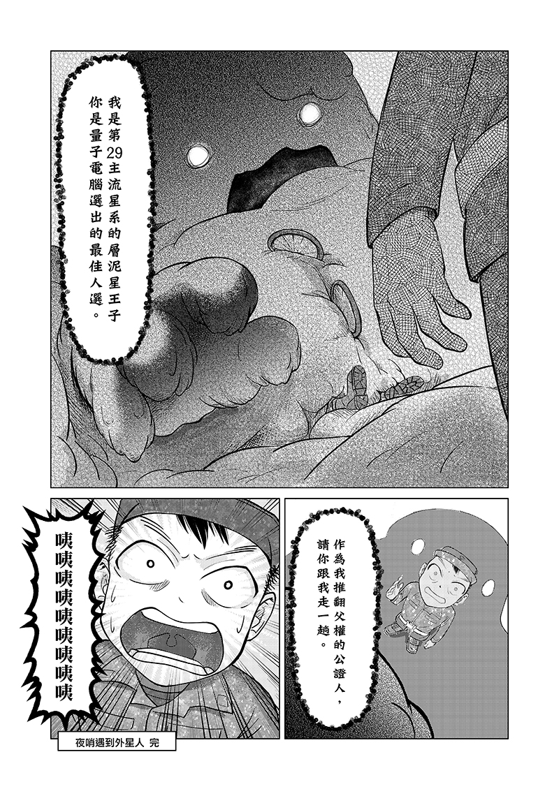 2017年某夜,末代義務役下士劉夜守,剛上哨就遇到他不想遇到的查哨官…及外星人…