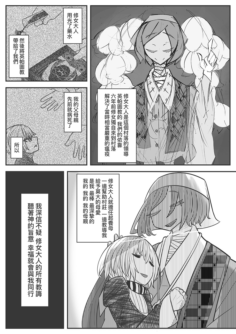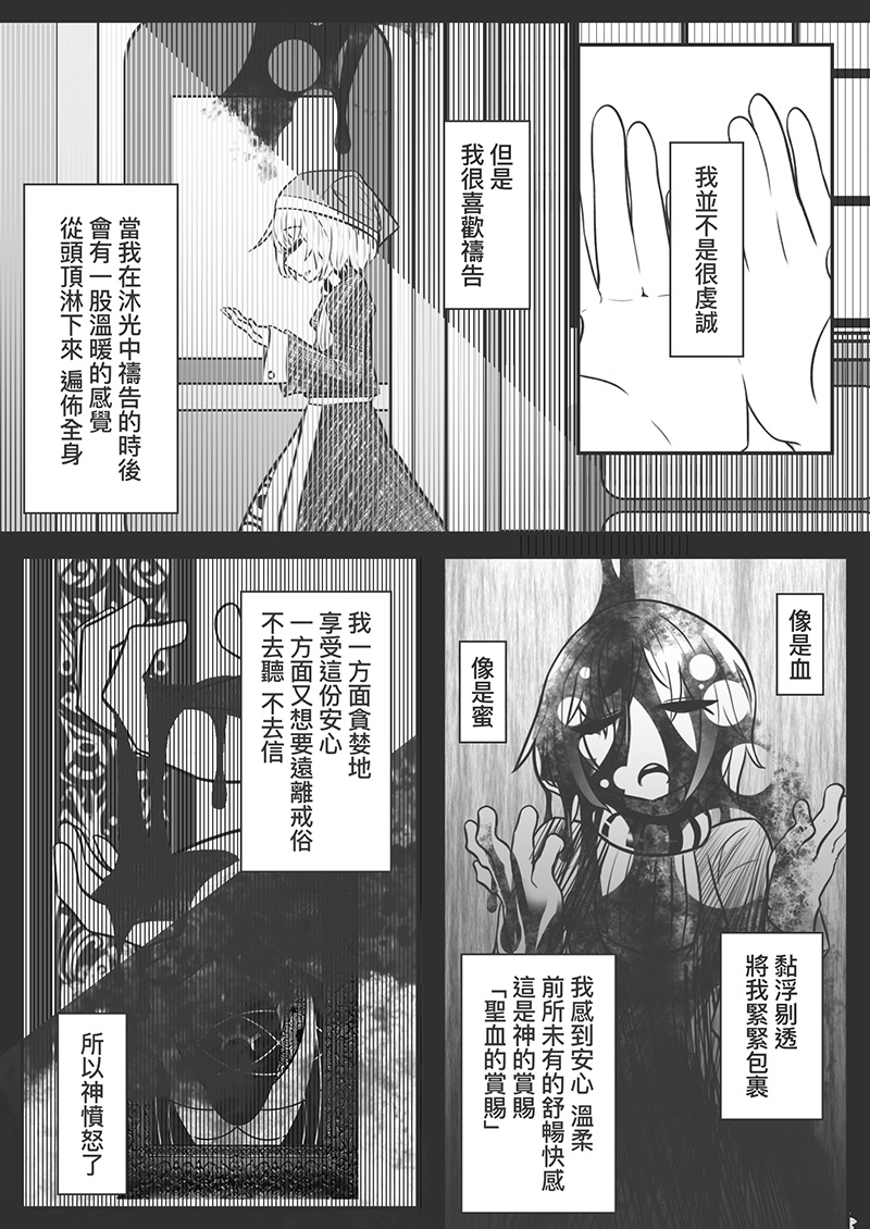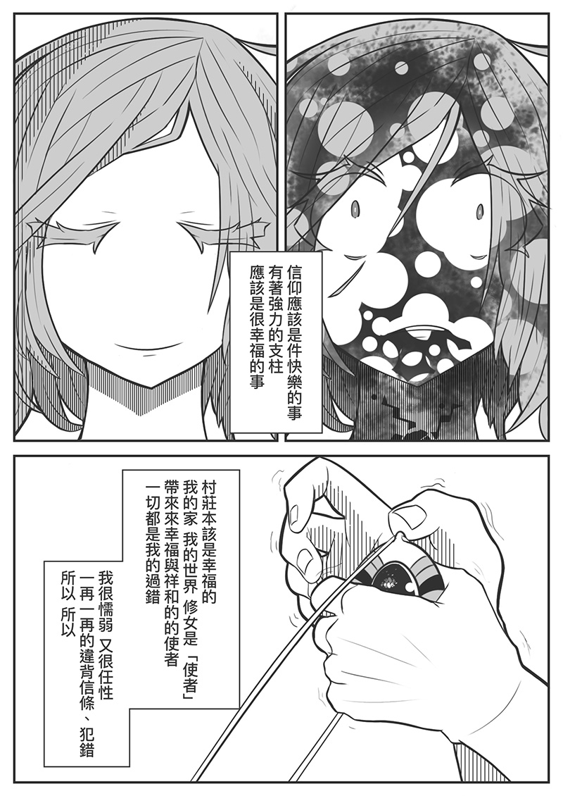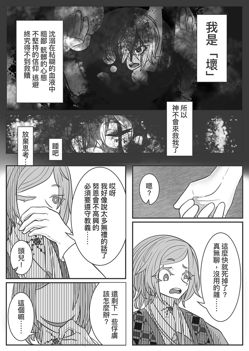 從自己對宗教的看法推導而來,其實原本並不是這麼灰暗的故事,只是想寫說「選擇你想選的,執迷也不是錯的事」,但不知不覺就變成這樣的情節。