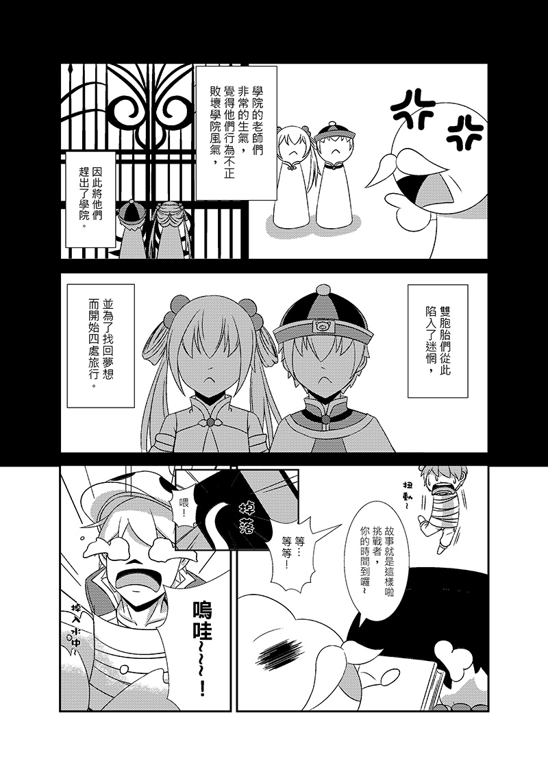 矢萊姆為了逃出這個包圍他們家的巨大迷宮,拚盡全力的挑戰迷宮裡的各個關卡,也從裡面知道了雙胞胎的過去,被這樣忽然出現的一群不速之客搞得暈頭轉向的矢萊姆和害他變成這樣的始作俑者雙胞胎們,他又會做出什麼反應呢??