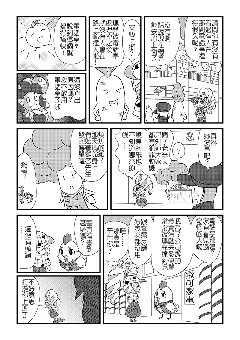 因喜歡推理故事而決定挑戰16頁的推理漫畫,但不希望故事中發生死人的狀況,所以決定以「食材」作為角色,同時構思出了本故事中的馬鈴薯>洋芋片的案件構想。