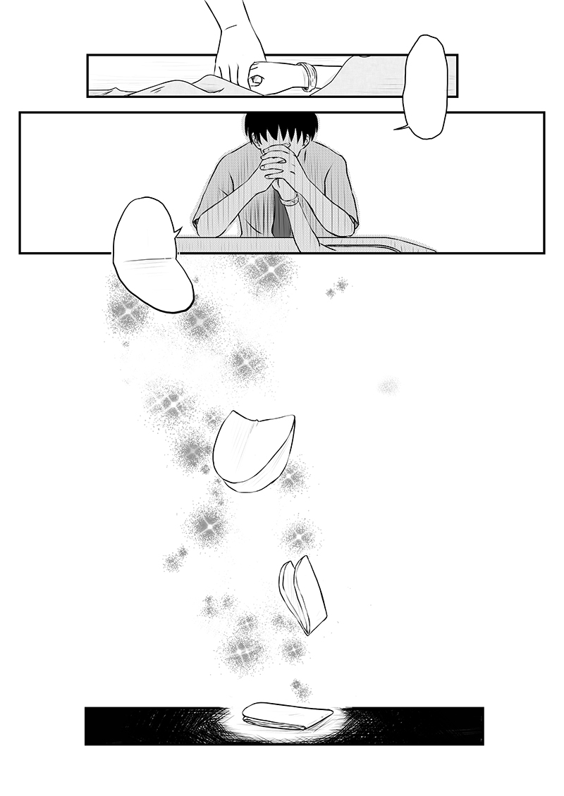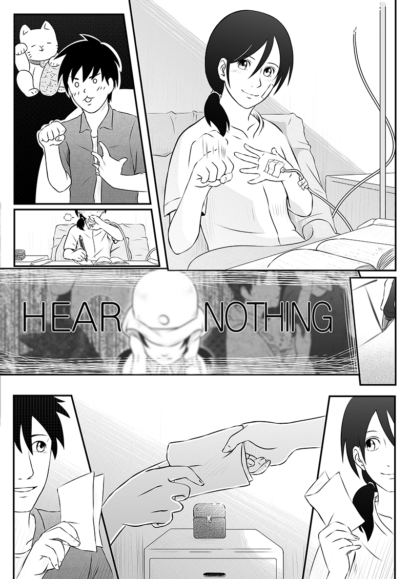 這個故事原本是為了一個無聲漫畫比賽所想的,又正好當時修了一門手語課程,所以便將兩者結合在一起。