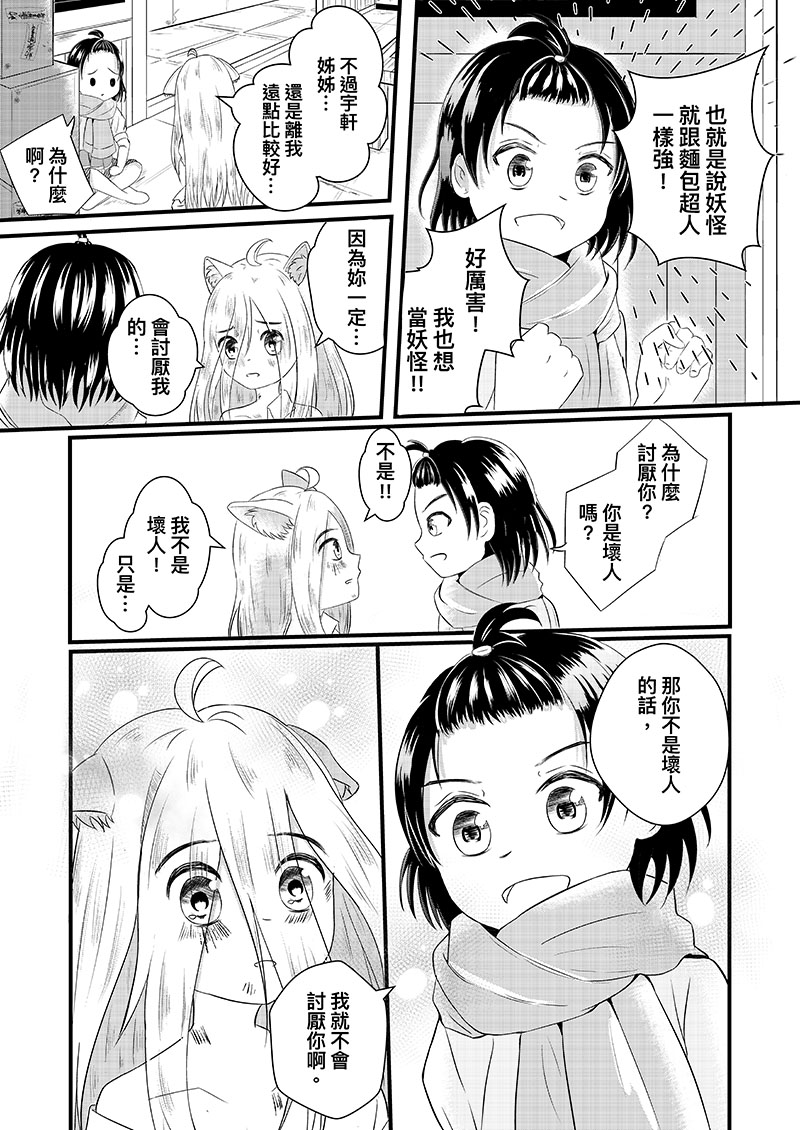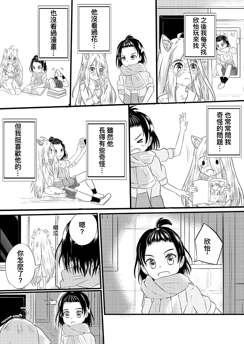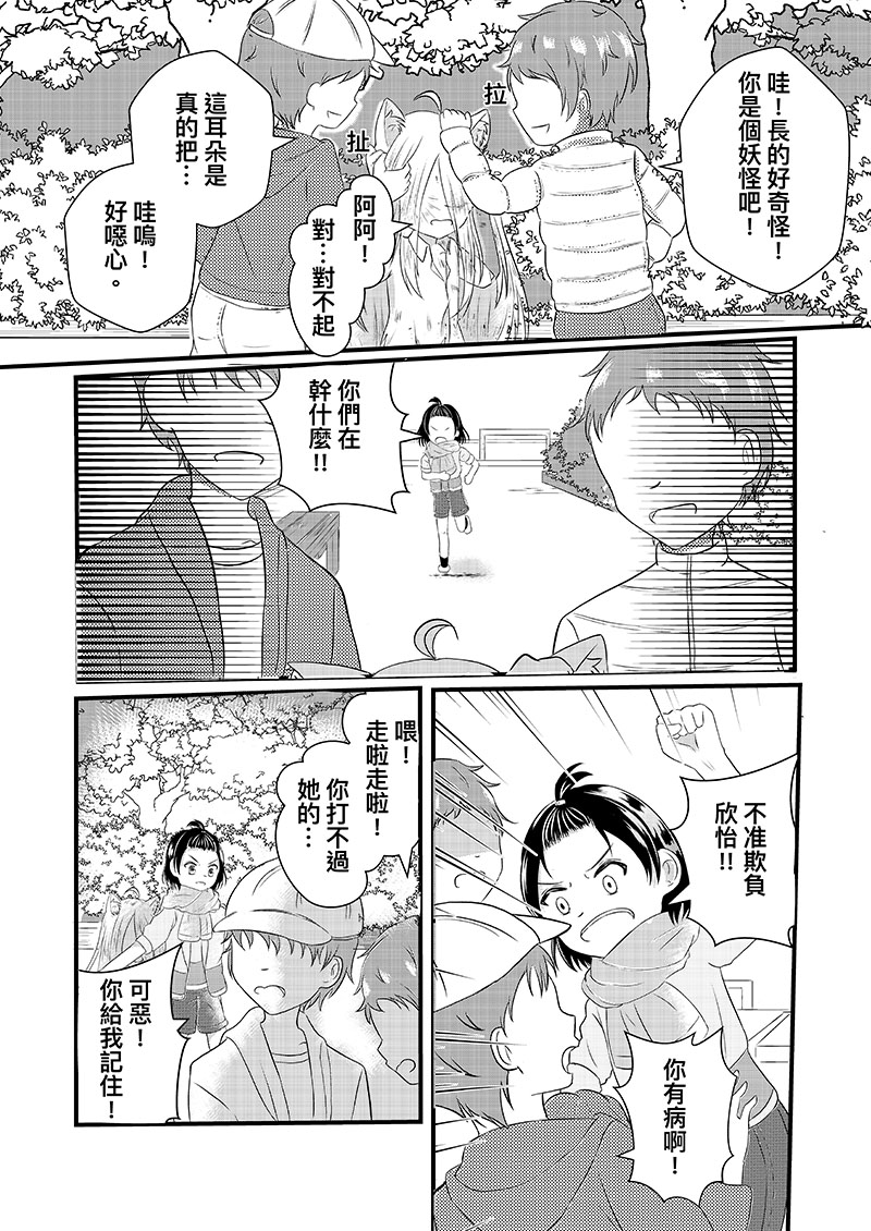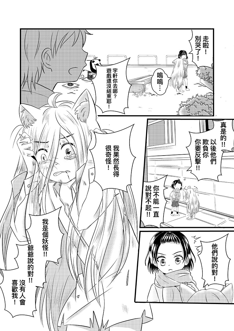 馮宇軒闖進了一間老舊的房子,在裡面發現了一個有著狗尾巴和狗耳朵並渾身是傷的小男孩欣怡。在得知欣怡是妖怪後宇軒還是和欣怡成為了朋友。過了段時間,宇軒把欣怡偷帶出去玩卻被附近的孩子欺負,在宇軒把那些小孩趕跑後便對欣怡許下會保護他的約定。但在二人開心地回去時爺爺知道了欣怡出去的事情,氣急敗壞的爺爺為了自己的利益準備對宇軒下手!