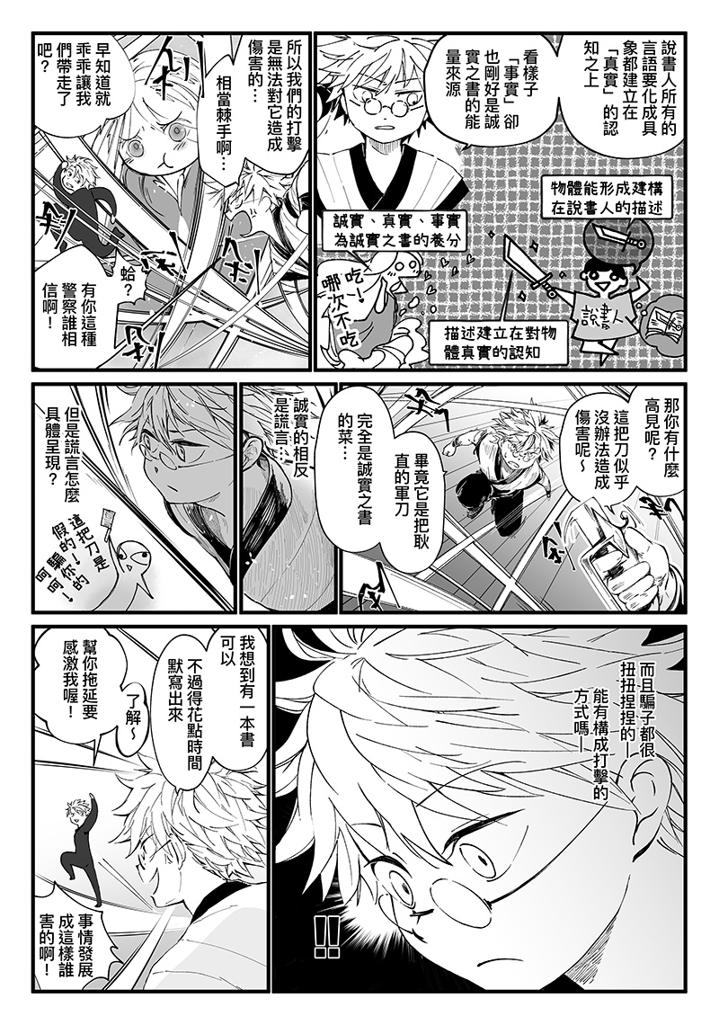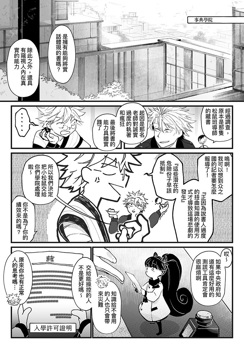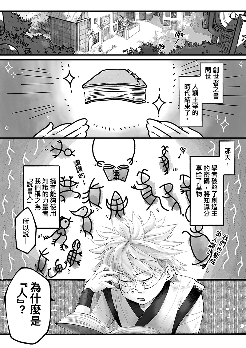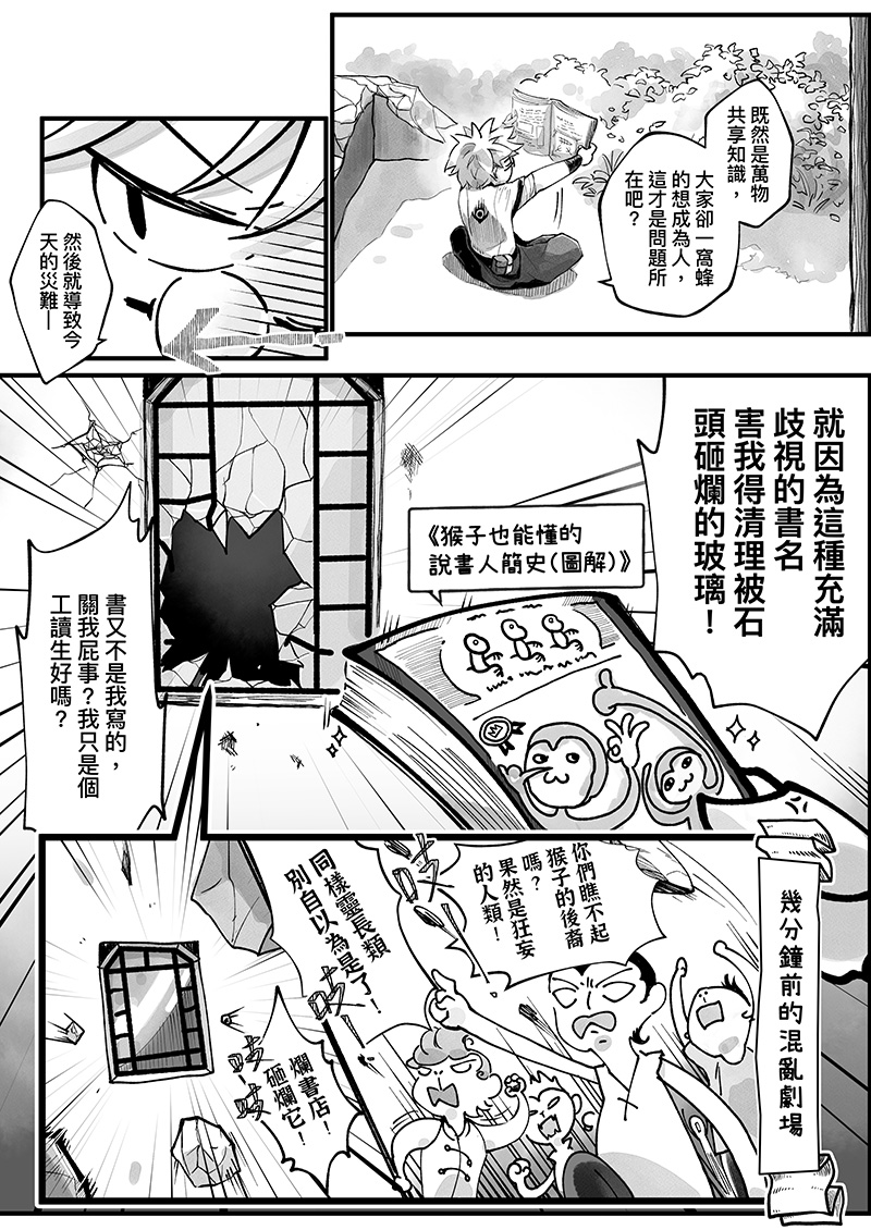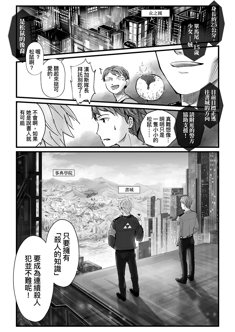 說書人是一群能將知識具象化的人。在破舊書店兼職的克雷諾意外捲入了一場追捕案件!警察跑來鬧場,把書店弄的亂七八糟、被列為殺人嫌疑犯的娀卻又搞不清楚事情的來龍去脈⋯⋯一切的真相大概只有在她手上的書知道了!只是一個低薪的工讀生,為什麼非得被扯入這件和自己毫不相關的故事裡啦!