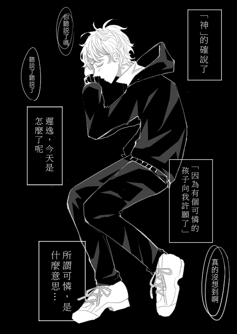六年前,一名自稱神的生物出現,控管了所有人的言論。遲逸是「我」在這個無法惡言相向的世界裡,唯一的、一同支持言論自由的夥伴。明明應該是如此......那天,遲逸與世界的秘密卻突然地暴露在眼前。