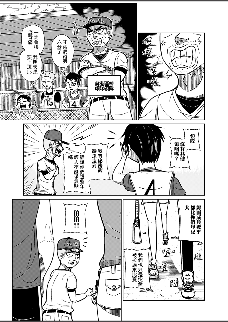 一場普通的普通的社區棒球大賽,南港區棒球隊這時請來的高中棒球的新秀來當救星,同時對手也有一位囂張自大但計劃慎密的國中生捕手,兩方大戰究竟會有什麼結果?