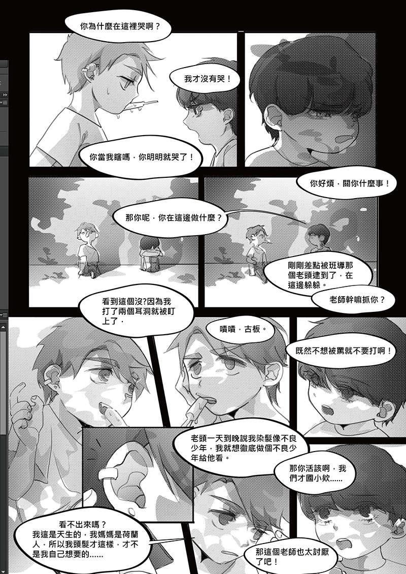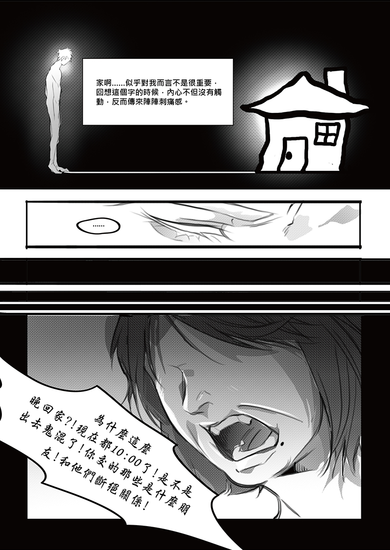 創作期間看見有人分享家庭紛爭帶來的不幸,讓我十分觸動,決定以這樣的題材作為創作中心