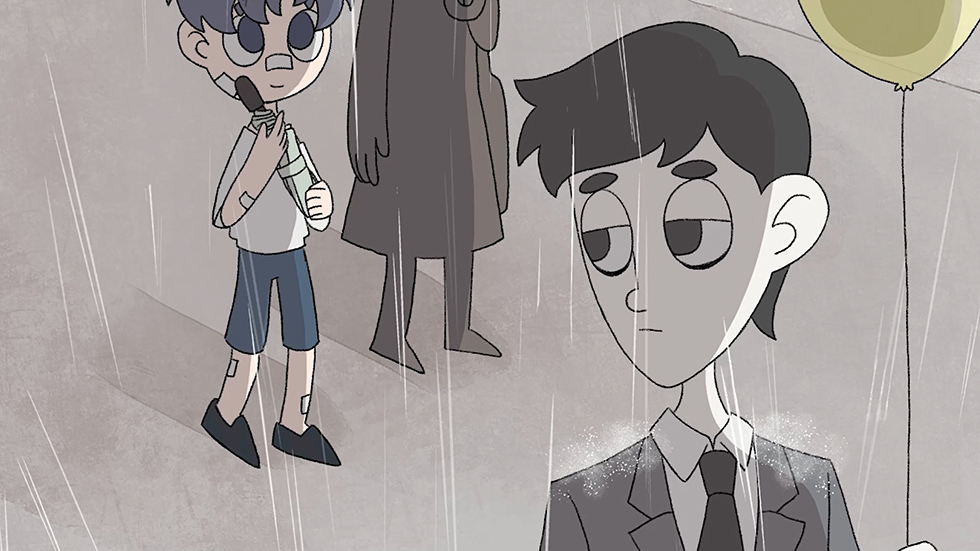 這是一座忙碌且冷漠的城市,不管是居民還是主角,都只想著自身利益,沒有人願意為了某人而停下腳步。這城市的一切都是如此黯淡,使得每個人都變得毫無色彩。主角是名普通上班族,總是雙眼無神,對周遭漠不關心。不過,自從有天在地鐵站遇到了哭泣的小男孩和熊,讓他逐漸有了前所未有的想法…