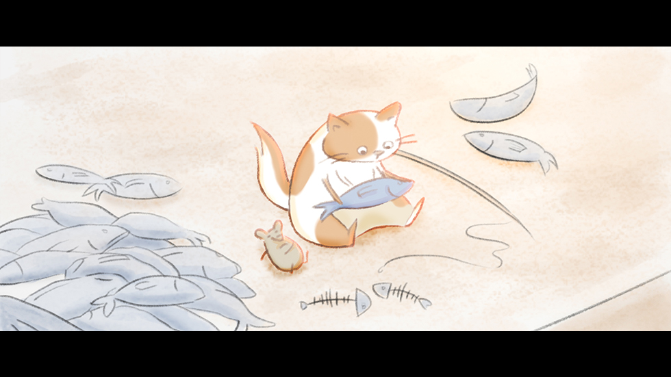 魚不可及以一隻生活在港口的貓咪為主角,貓雖然天天有吃不完的魚,但還是對一成不變的生活感到厭倦,而在一次為了讓搶不到魚的好友不挨餓,貓決定打破生活常規,和好友一起到港口邊釣魚,過程中意外被老漁夫看見,他相中了貓的釣魚技術,便邀請他們一起到船上出海釣魚,就此展開了三人的航海冒險。