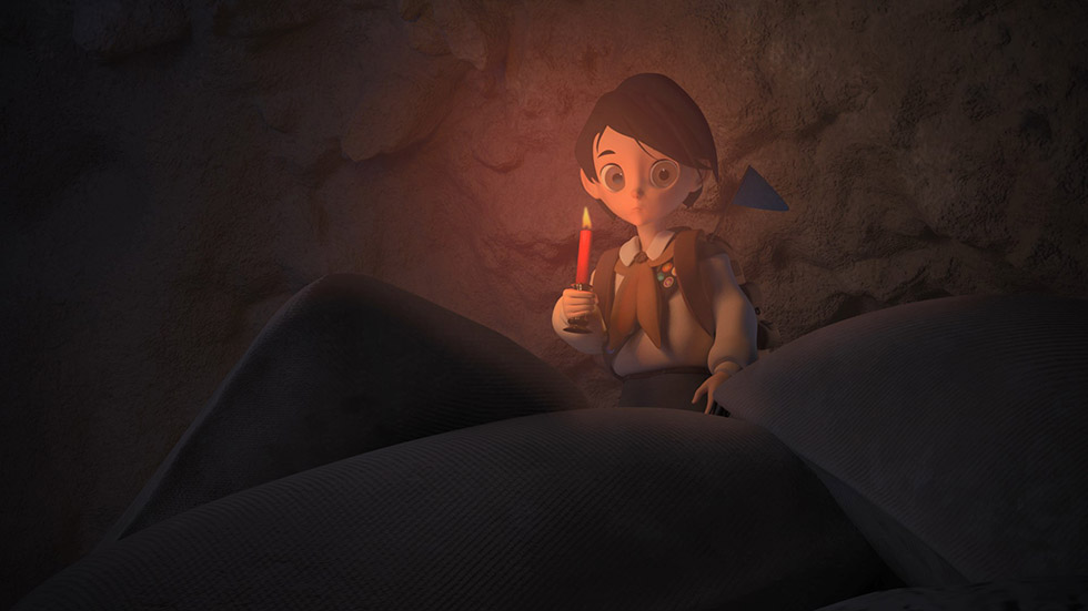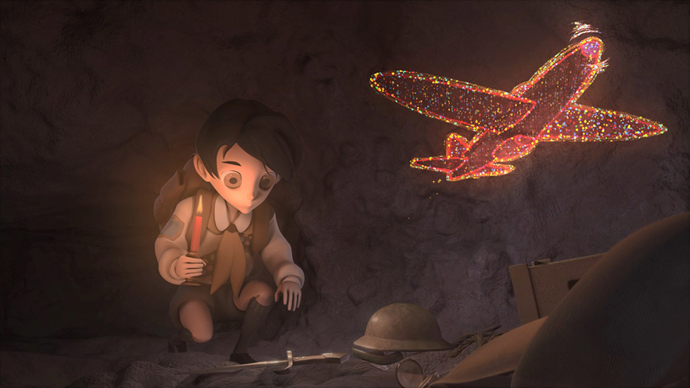 男孩決定要找到地圖中的寶藏,隨後走進戰爭時期留下的戰備坑道。在隧道的深處看到了前人的遺物。隨著燭光照亮山壁,壁畫開始動了起來……
