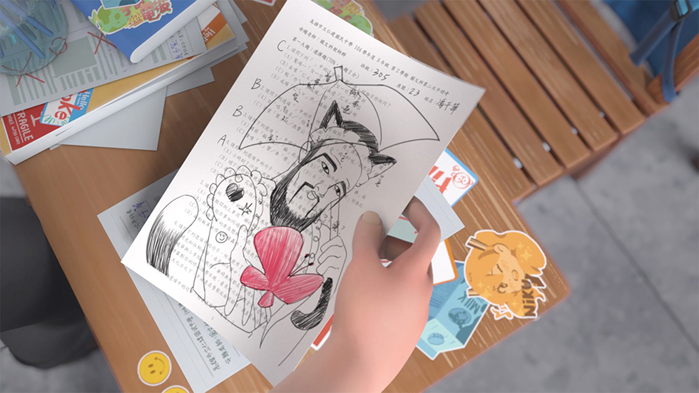 《余憶童稚時》為一部3D動畫作品。講述國中生小馮因為在考卷上塗鴉,與老師產生衝突,兩人在教室裡展開追逐戰。