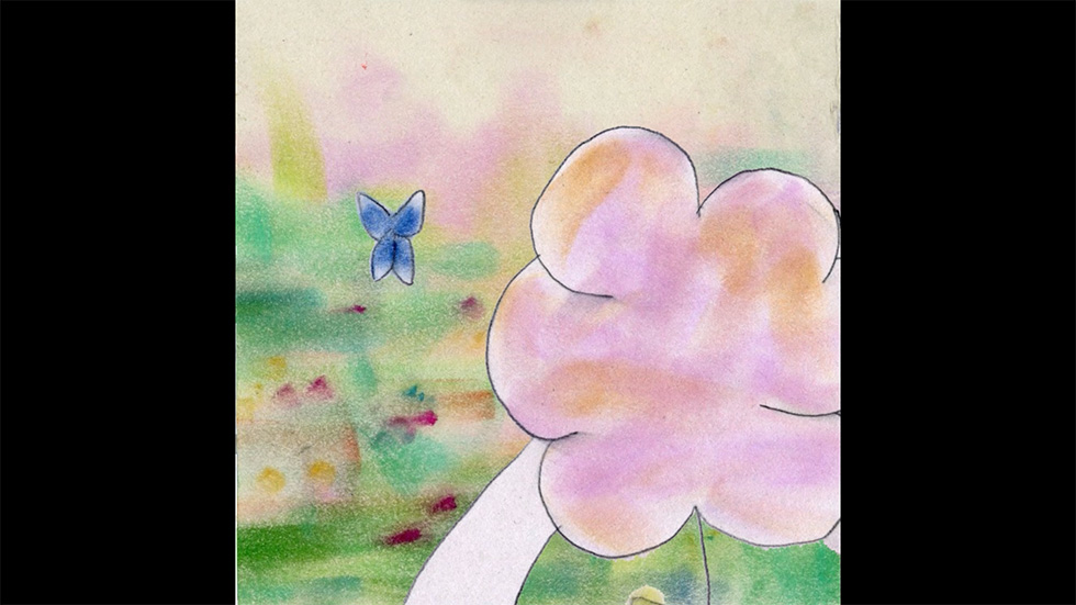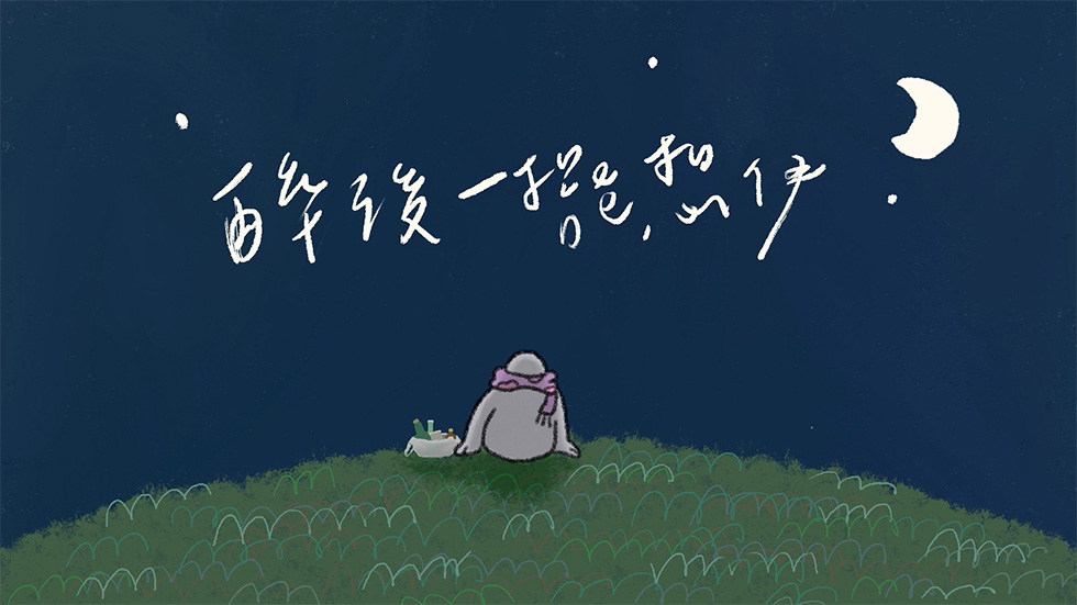 花代表主角、蝴蝶代表前任,我們利用背景顏色的不同來暗示情緒的轉變。我們藉酒澆愁,從酒杯裡看到的是最脆弱的自己,曾經的快樂、想念、悲傷、不解、懊悔,所有情緒藉著酒精傾瀉而出。但相信難關會過去,最終自己能夠療癒自己,眼淚擦乾,抬頭望望天空,微風、青草、暖陽,才發現無論發生什麼,世界仍然溫柔而美麗著。