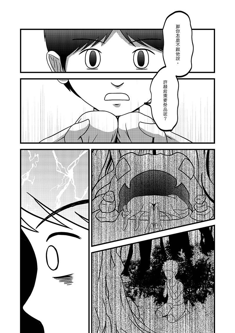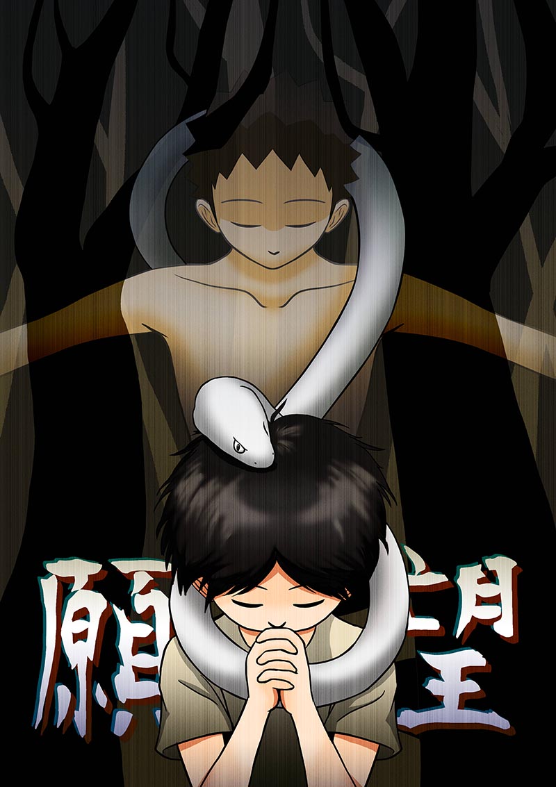 本身很喜歡怪力亂神的故事,加上想嘗試懸疑類題材,所以以台灣路邊鄉野間小廟去發想,希望作品呈現出細思極恐的感覺。