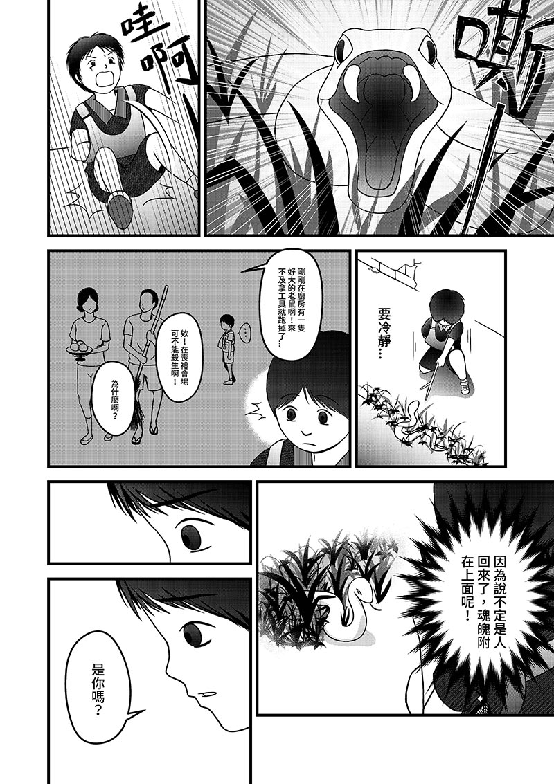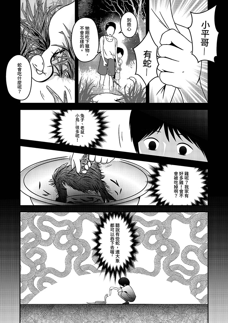 樂樂最要好的玩伴小平哥過世了,在告別式的會場中,遇到了一隻小蛇,想起和小平哥在山野間到處玩耍的日子,決定帶小蛇回家陪伴自己。有一天,小蛇居然不見了,樂樂緊張地到處尋找......