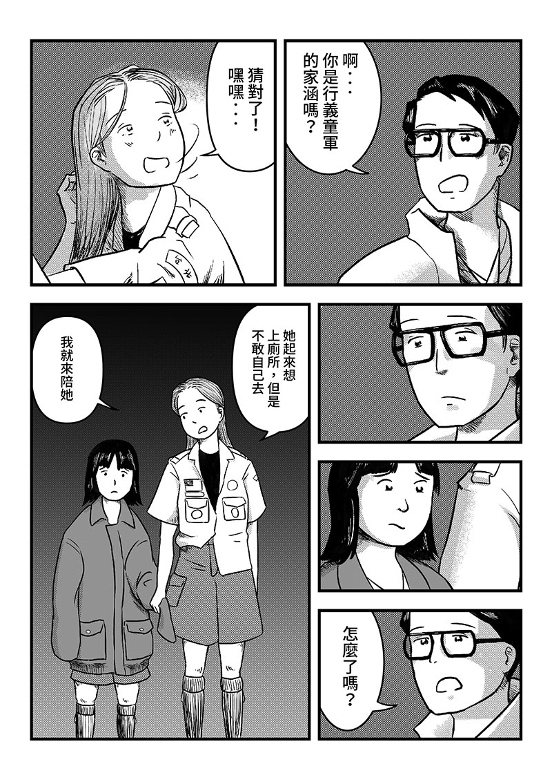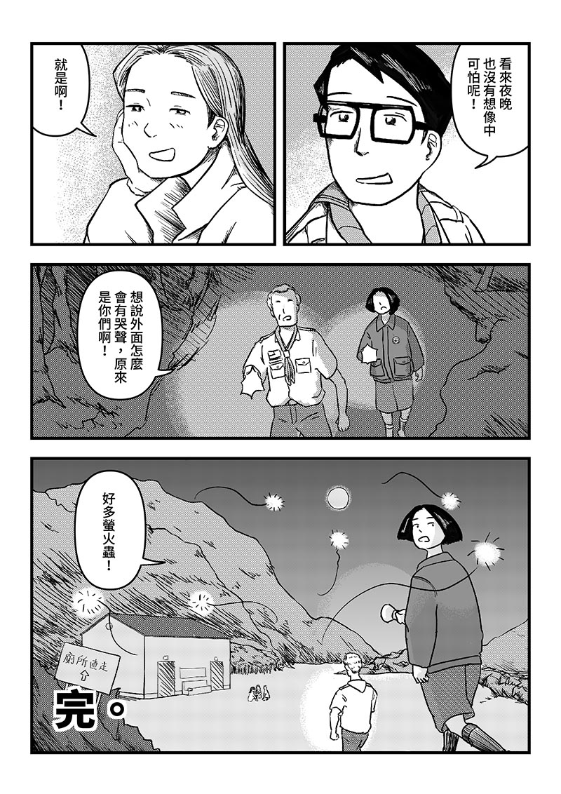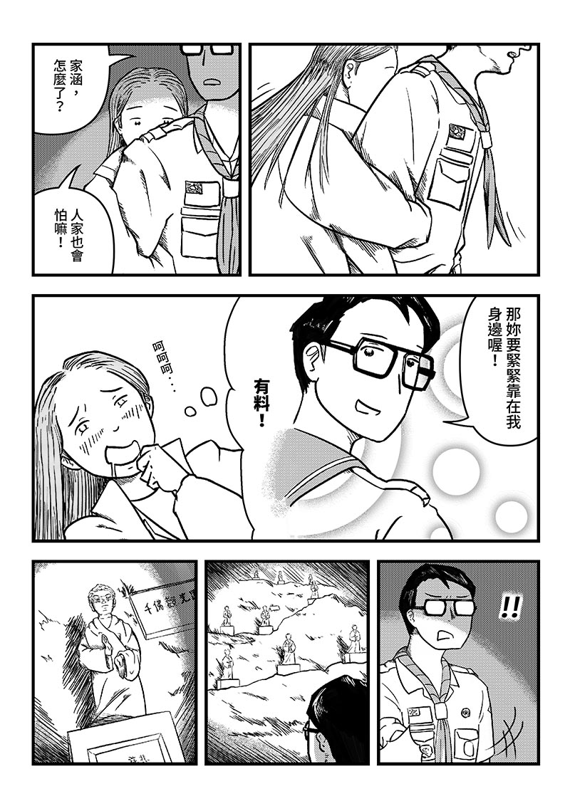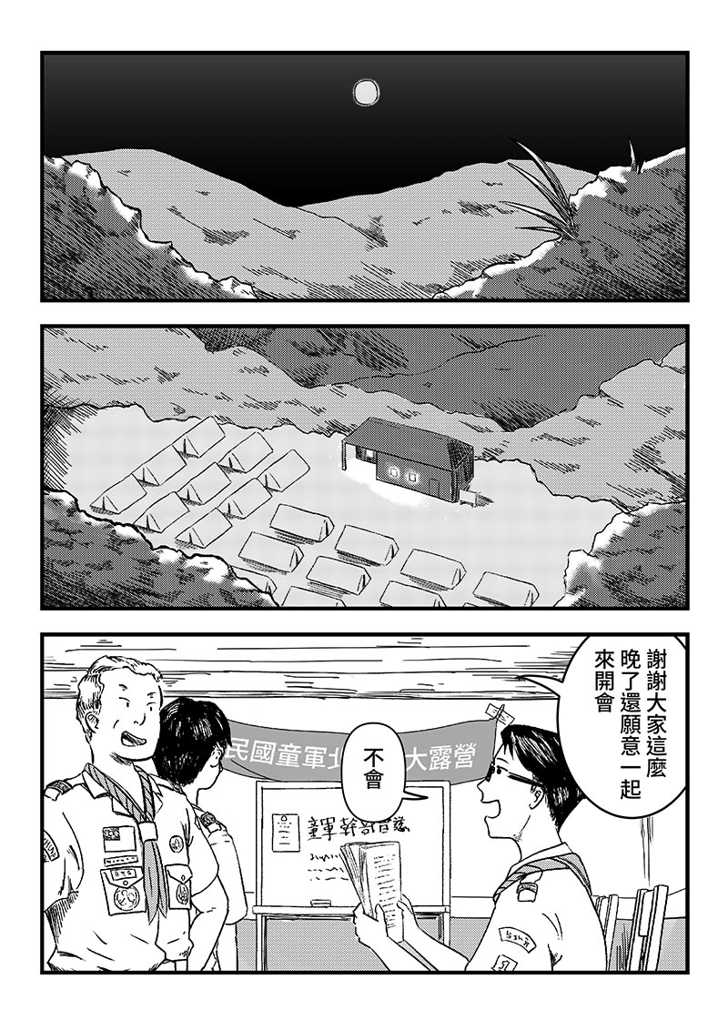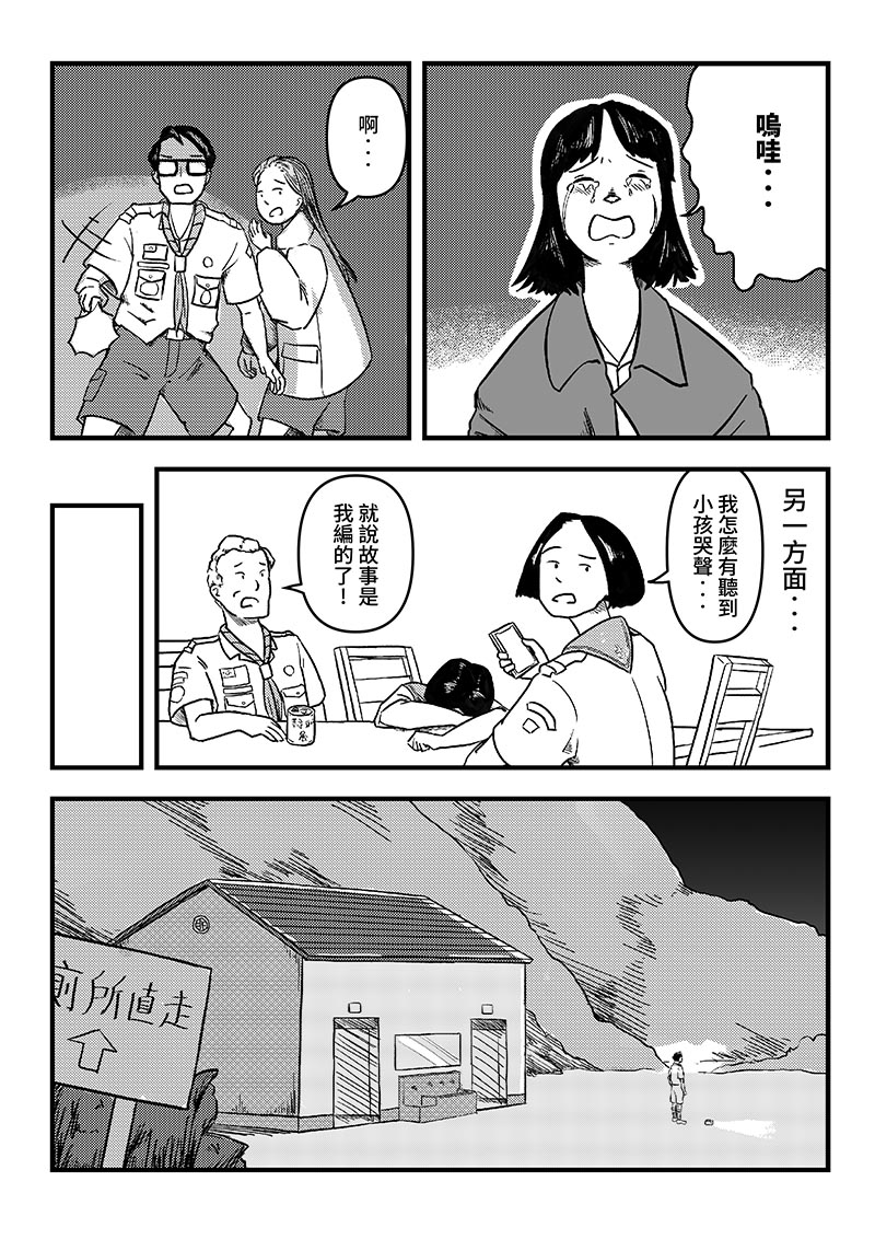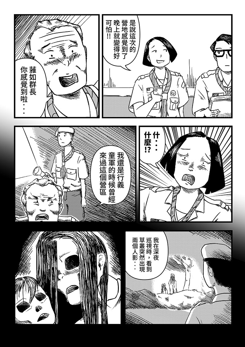 童軍露營的場地流傳著關於女鬼及她孩子的故事,童軍幹部—嘉樂團長,帶上一位不敢晚上去廁所的小童軍及愛慕他的行義女童軍,展開一段森林怪談。