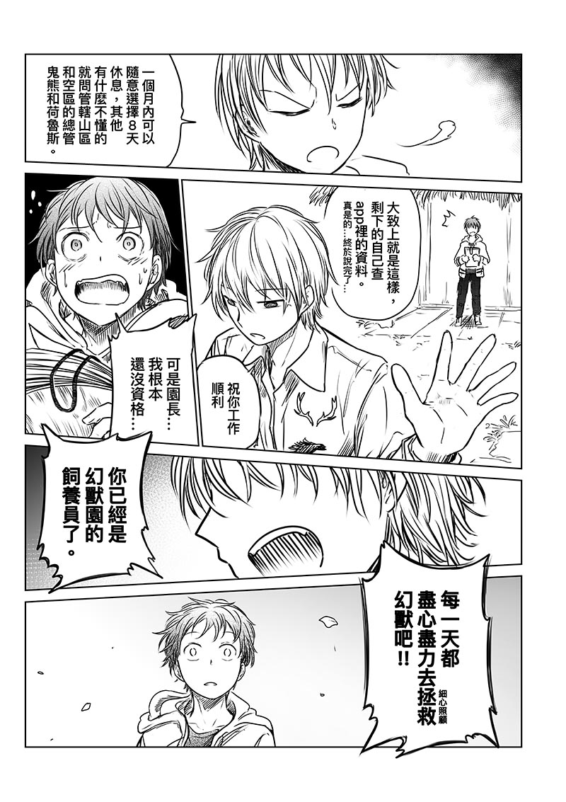 因為自己喜歡設計怪物等生物,且也是自己設計過比較接近治癒日常養育類的漫畫創作,於是就想:"要是有個地方能看到所有世界的怪物,那該有多棒啊!!不然....就來畫吧,然後....噹噹!!!幻獸園就這麼誕生了!"以讓世界的人都能看到世界的幻獸為契機,真心希望大家喜歡這部作品~