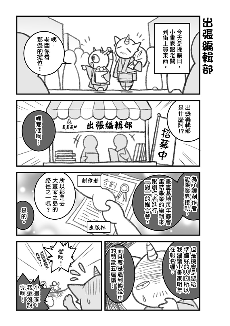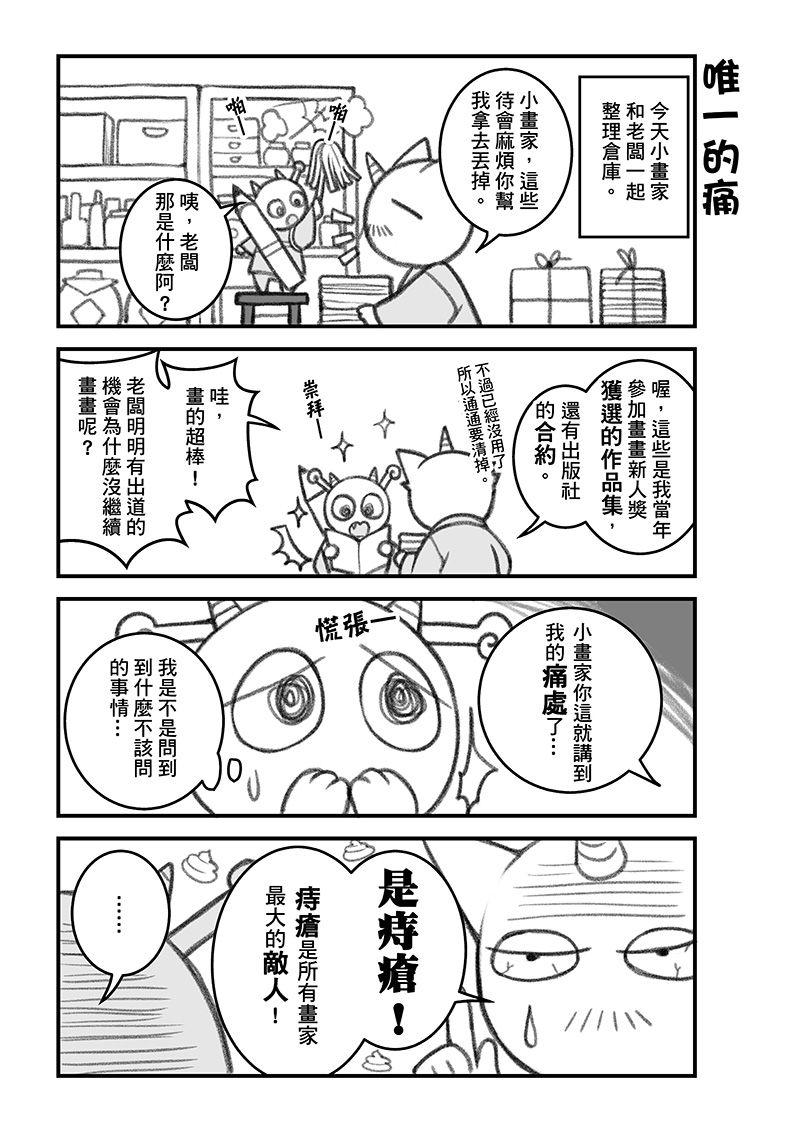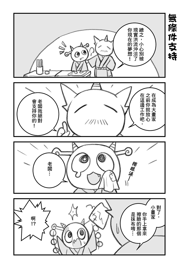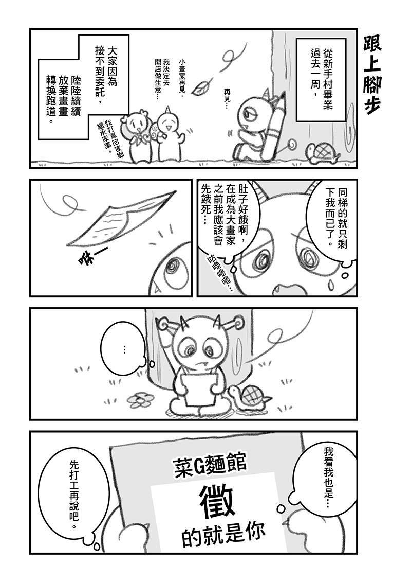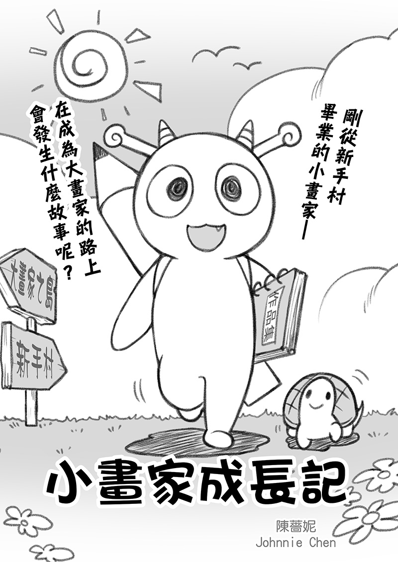 某天翻了兒童的彩色繪本,裡面輕鬆可愛的塗鴉風格讓我也想嘗試套用在頁漫裡試試看。