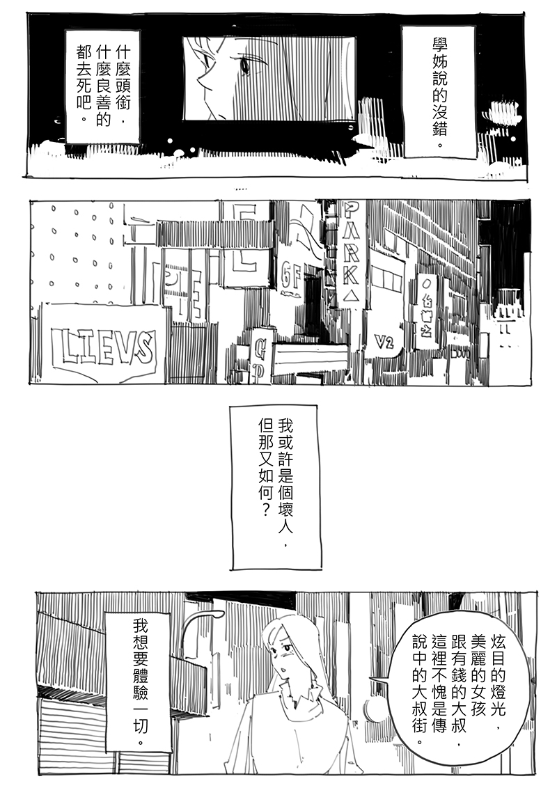 最近閱讀了有關日本應召女郎逐漸變成時下女孩打工副業的情況,感覺到觀念的變化。這次的故事我想試著讚美那些離開體制追求自我的人。